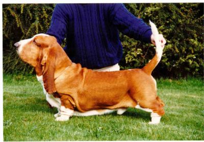 Design, Litter brother to Ch Switherland Blue Jeans and Ch Switherland Betabuy Design gained his only CC at Hound Association of Scotland under breed specialist Malcolm Ellrich. Two of his Res. CC came under breed specialist Siegfried Peters, the first at Southern Counties 1997, the Second at City of Birmingham 1998. Design’s first Res. CC was won at Richmond 1995 from the puppy class under another breed specialist Michael Errey.