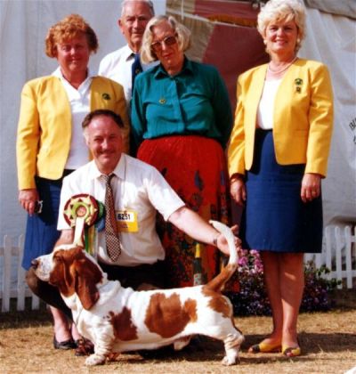 Strudel, also owned and campaigned by Tim & Sue Thompson, won all his CC’s with Best of Breed. His first came under top all-rounder the late Terry Thorn at South Wales 1995. He went on that day to win the hound group under June Mimms. His second CC came at Midland Counties under breed specialist Marianne Nixon. Strudel gained his title at Belfast 1996 under the late Jane Wilson Stringer. Strudel is one of three Champions from this litter; he is litter brother to Ch Switherland Surprise and Ch. Switherland Sage.